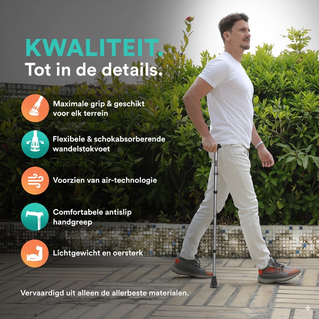 "Dé ultieme wandelstok voor ongeëvenaarde grip, stabiliteit en veiligheid!”