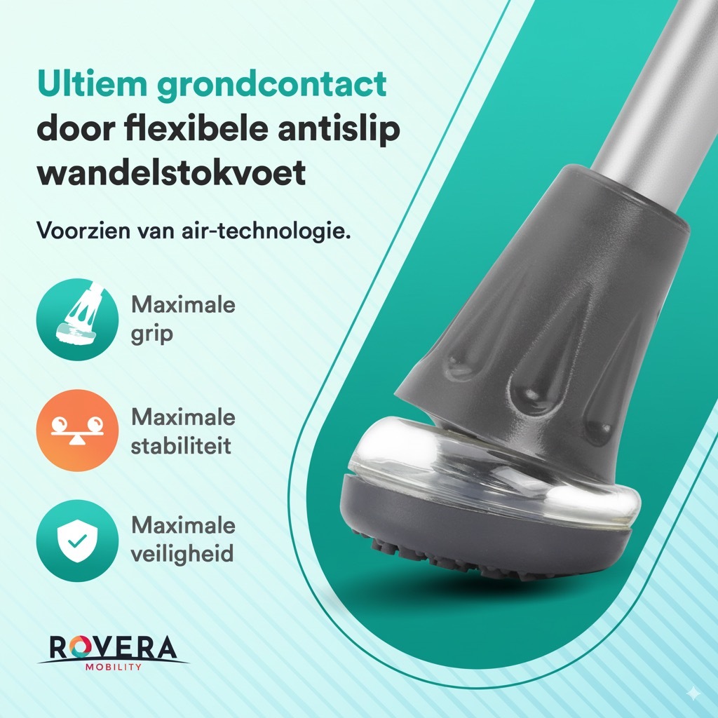 Ultiem grondcontact door flexibele antislip wandelstokvoet